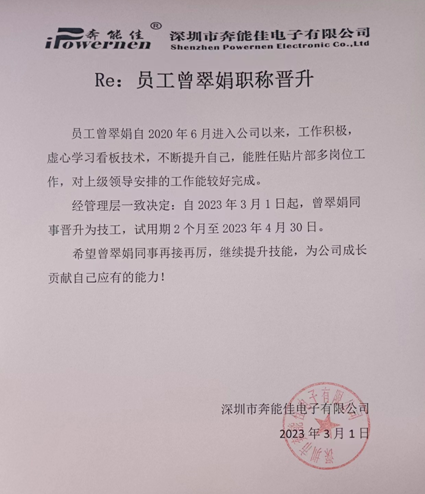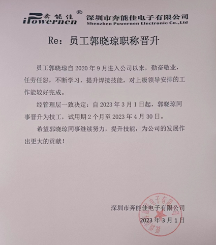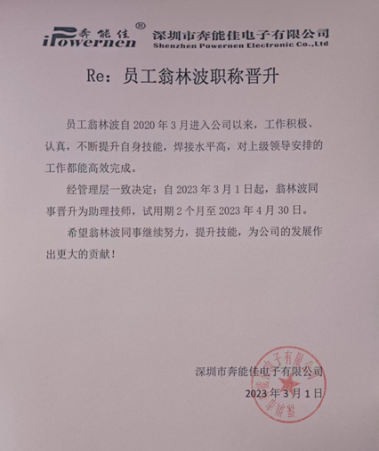 本次晋升员工为:翁林波、曾翠娟、郭晓琼